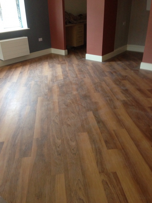 Nursing home in Hull, all the dining areas and common rooms done in Karndean on a 45 with a single plank border. Filler tiles are Arran oak whilst the border is Niveus wood.